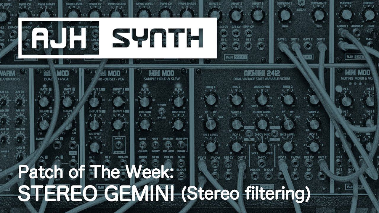 This week's patch shows how you can use the Gemini 2412 VCF (otherwise a twin or 2 filters) to create stereo panning effects, by using an LFO and 2 VCAs. It's easy to create stereo amplification or panning of a sound just by using a pair of VCAs in the same manner as detailed in this video, or just in post-processing, but where's the fun in that?? Actually filtering and shaping the sound in stereo, using two filters that can have completely unique settings, is much more sonically interesting, and offers a huge range of sound possibilities.