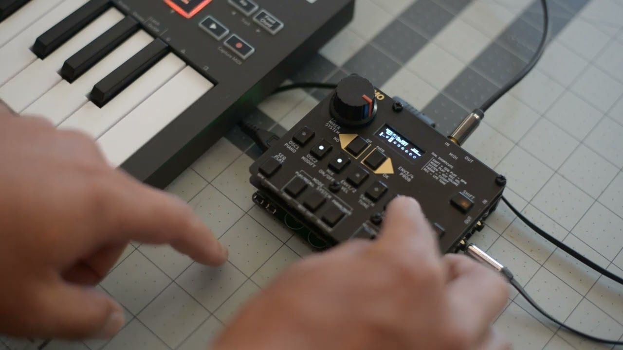 The sound generation is based on two digital oscillators. These work with a self-developed engine, which can be operated as virtual-analog synthesis, 4-operators FM or a granular algorithm. The oscillators can be played monophonically or in two voices.