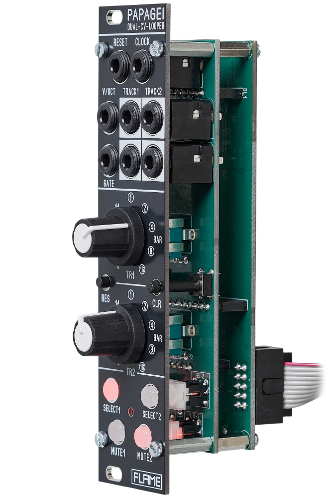 Der FLAME Papagei ist ein 2-Track-Looper-Modul, das mit externer Clock (16tel)