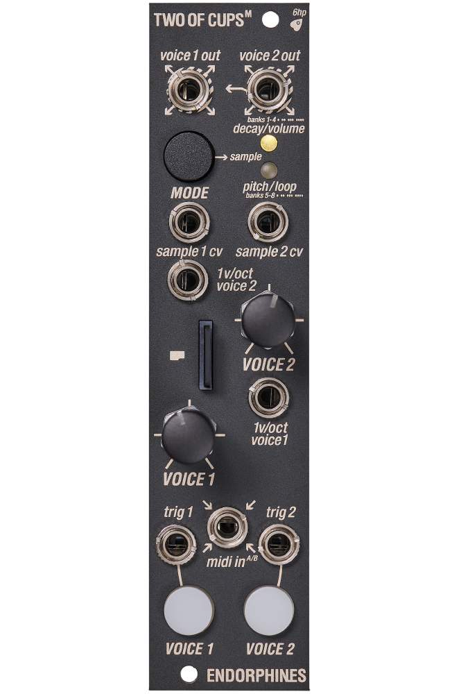The Two of Cups M/MIDI is a two-voice sample player with eight banks.