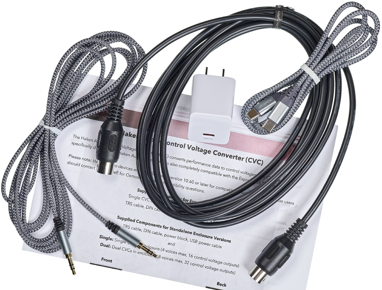 The CVC can be programmed via the Haken Editor to create entirely custom control voltages; up to 8 control voltages can be defined for a voice, integrating formula math, shape generators, delays, and other EaganMatrix functionality into your analog performance.