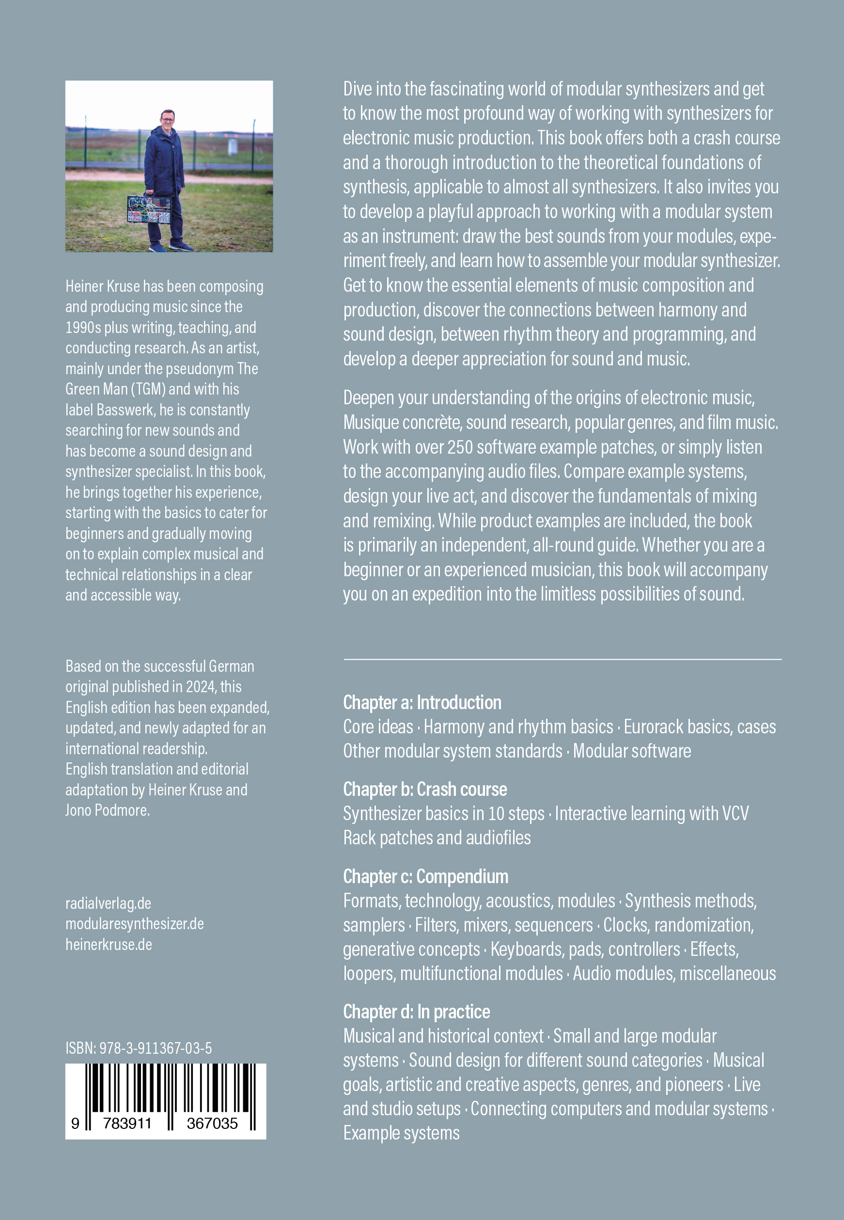 Available in English translation by Heiner Kruse and Jono Podmore, the book features 440 pages, 230+ illustrations, and 250+ software example patches and audio files.